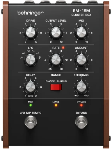 The Behringer BM-18M CLUSTER BOX is a modulation powerhouse that blends the warmth of classic chorus and flanger tones with a modern edge. At its core, a simple range rocker lets you switch between lush chorusing and sweeping flange textures—but the CLUSTER BOX is anything but basic. Whether you’re chasing vintage shimmer or pushing into wild, unpredictable territory, this pedal is built to inspire.
