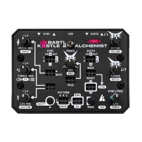 The Alchemist offers a range of Bastl-brewed Synth Modes – Filter, FM, Supersaw, Hypersine, and GlitchNoise – which can be combined with its internal effects and a versatile Pattern Generator. Rhythms and scales are fully customizable via the web-based app, and expanded MIDI USB compatibility adds even more flexibility.