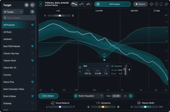 Tonal Balance Control 3 also features an expanded target library that provides references for a longer list of genres, including dubstep, drum & bass, hyperpop and more, and multiple targets can now be blended together to create hybrid genre combinations.