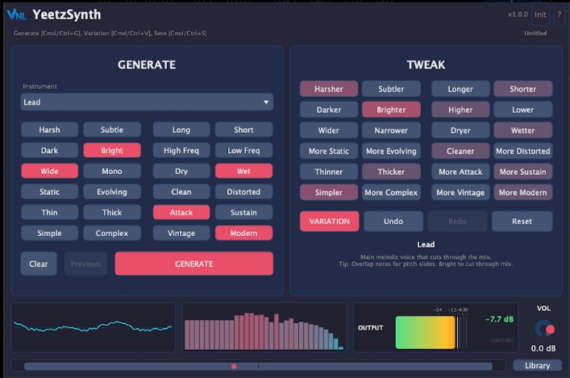 - Select ‘Generate’, and YeetzSynth builds an original patch for you.