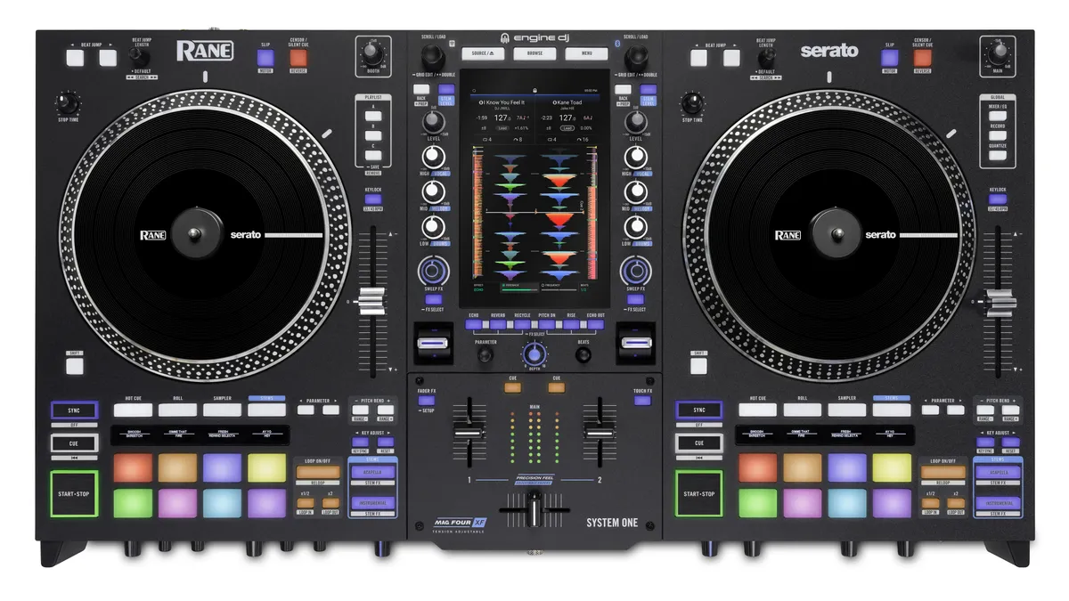 Rane has announced the release of the Rane System One, a new flagship all-in-one DJ system that boasts motorised turntable-style platters and the ability to mix between tracks from physical storage devices and streaming services, blending advanced standalone DJ technology with the trusted feel and control of motorized platters.