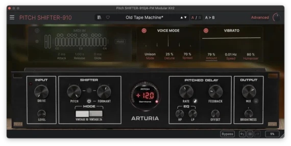 Arturia’s take has both vintage and modern pitchshifting engines as well as a dedicated delay section that can be used to create pitched repeats. It also has a dual mono mode, which recreates the classic studio trick of using two H910s to have shifted versions of an audio signal panned hard left and right.