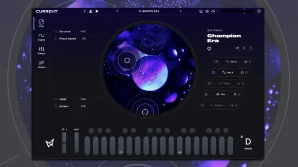 The original version of Current brought together multiple sound engines, effects, and a cloud-based content platform in a single plugin; its two-oscillator wavetable synth is joined by a granular engine, a sampler, and additive sub-oscillator, all passing through a dual multimode filter and an effects section that includes a variety of the company’s effects processors. The plugin also gives users access to Stream, a cloud-based content platform that regularly delivers new presets and samples to subscribers.